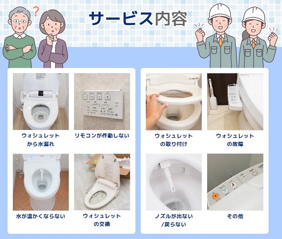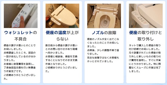 東京都北区で対応可能な温水便座、ウォシュレットの修理サービスとなります。その他のトラブルやご相談に関しましてはお気軽に受付窓口までお問い合わせください。